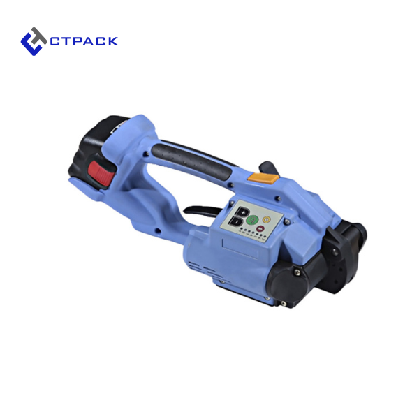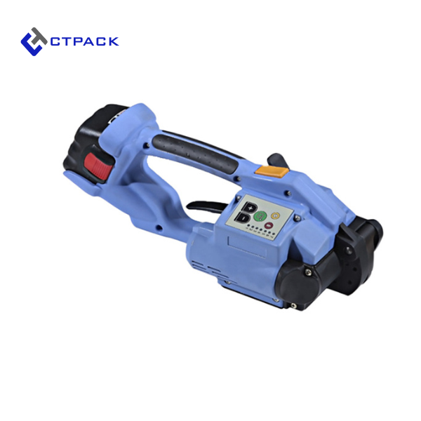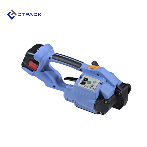 The tool is light (3.9kg) and easy to use. Strap tension and sealing time can be adjusted at the touch of a button. The tool comes complete with a charger and two batteries. Incorporates the latest in strapping technology.