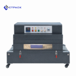 - Furthermore, the height of shrink tunnel is able to be adjusted according to the size of packing goods.