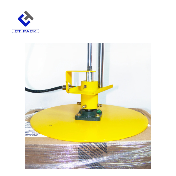 - TOP PRESSURE PLATE: Keeps products safe and secured while stretch wrapping them.
